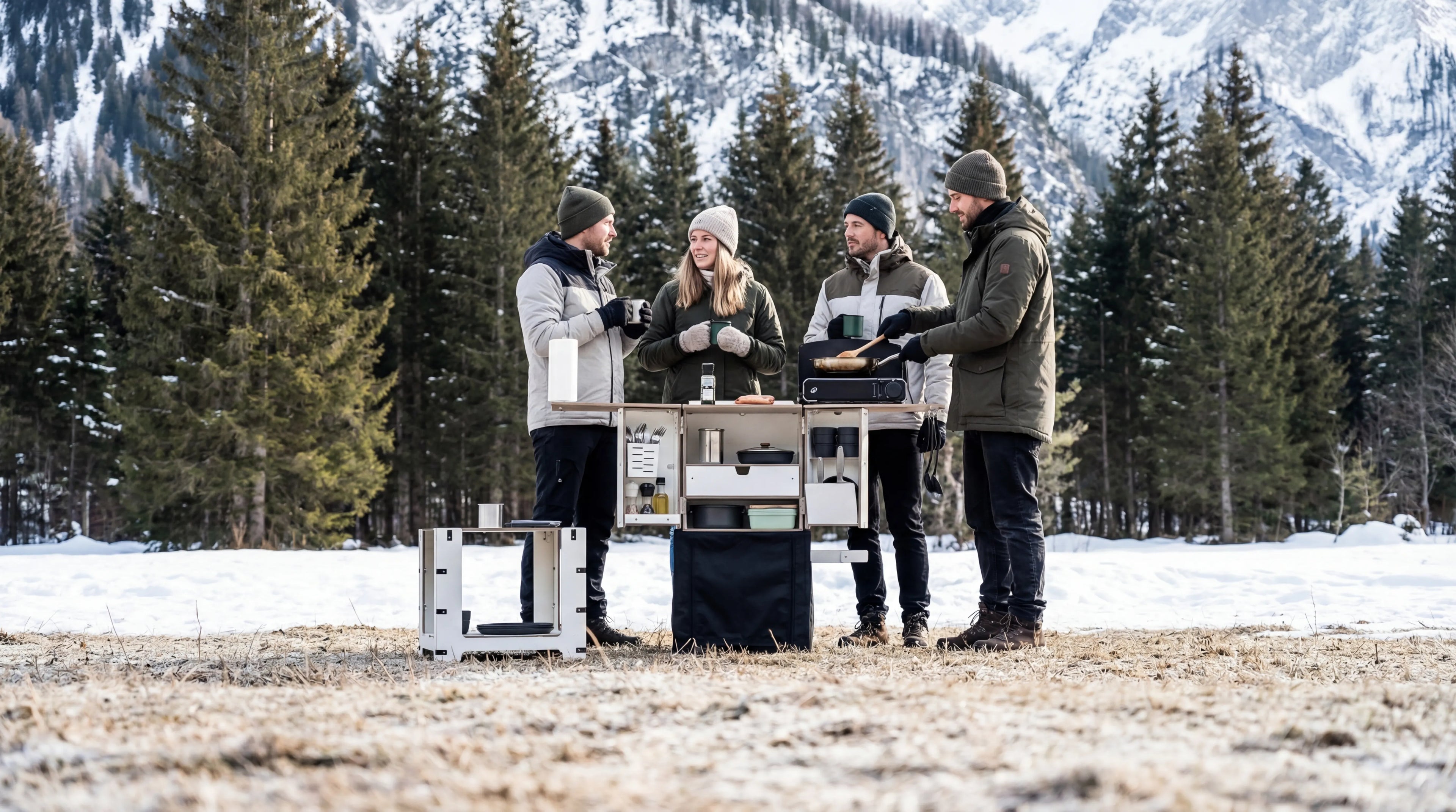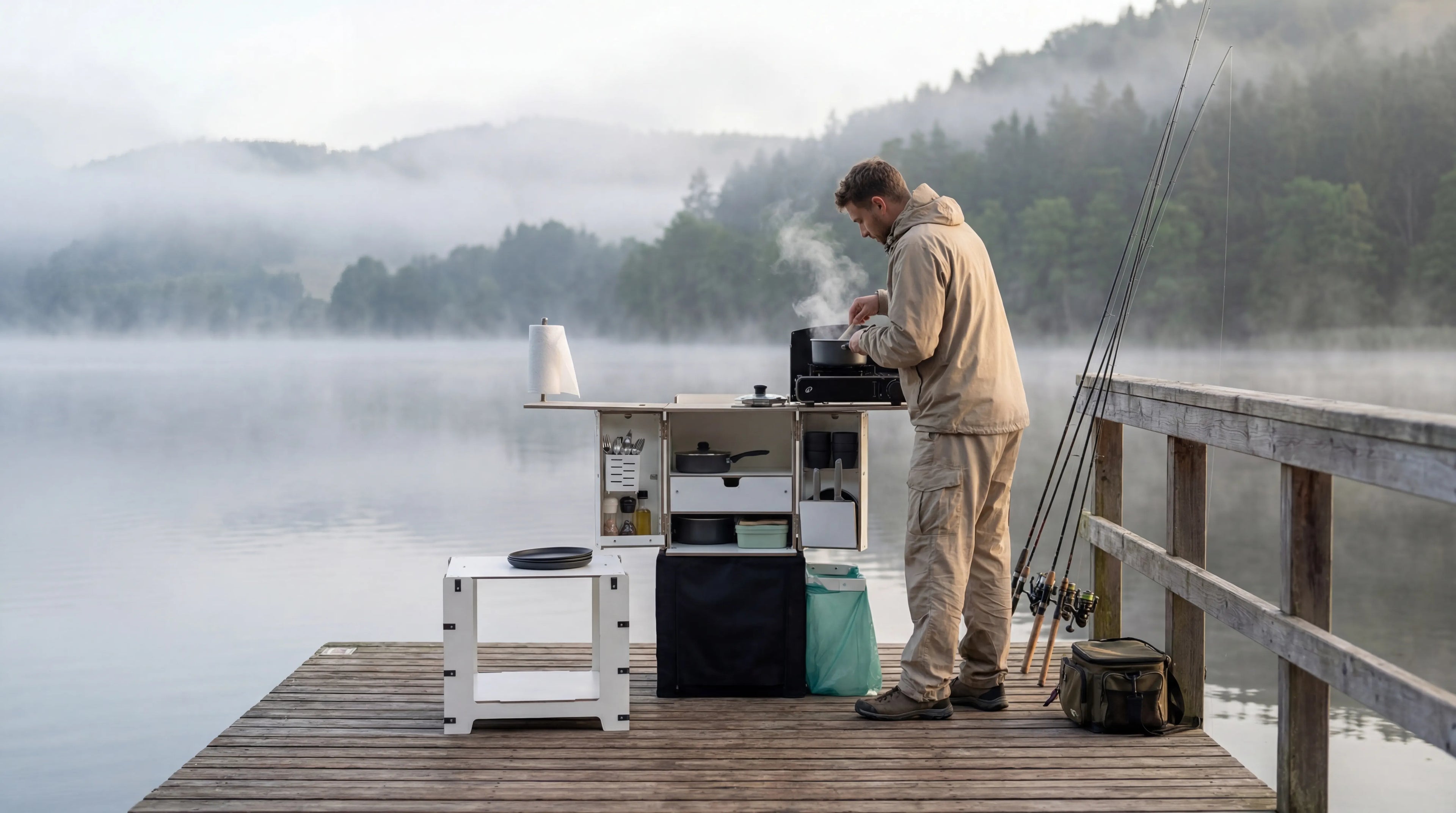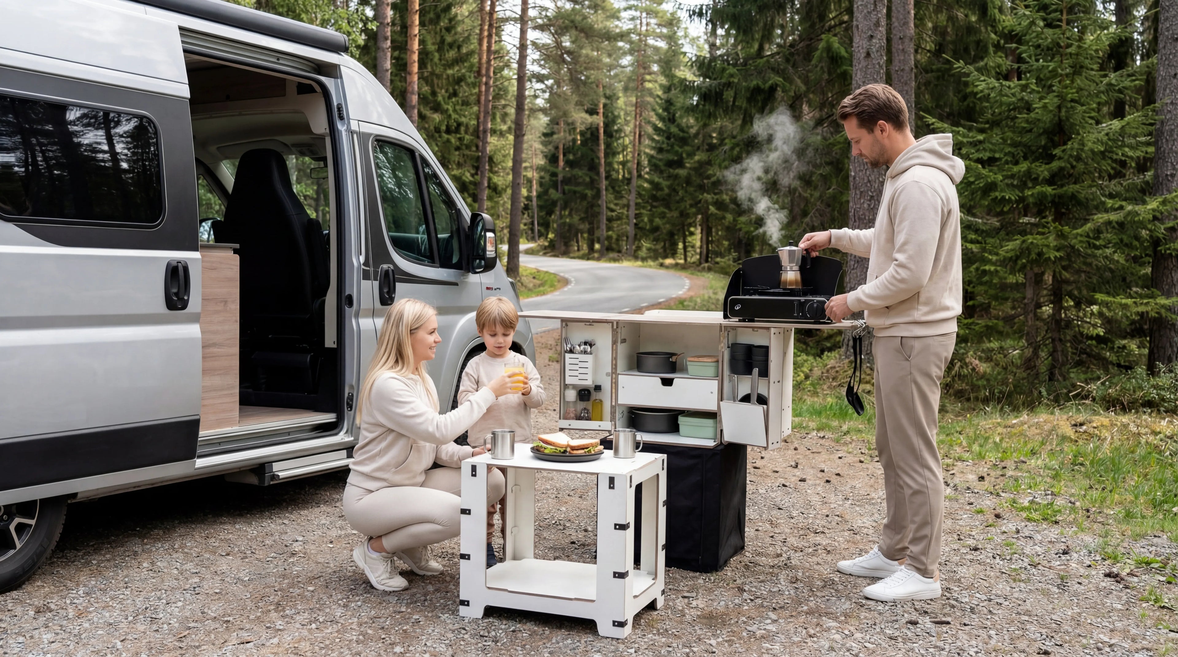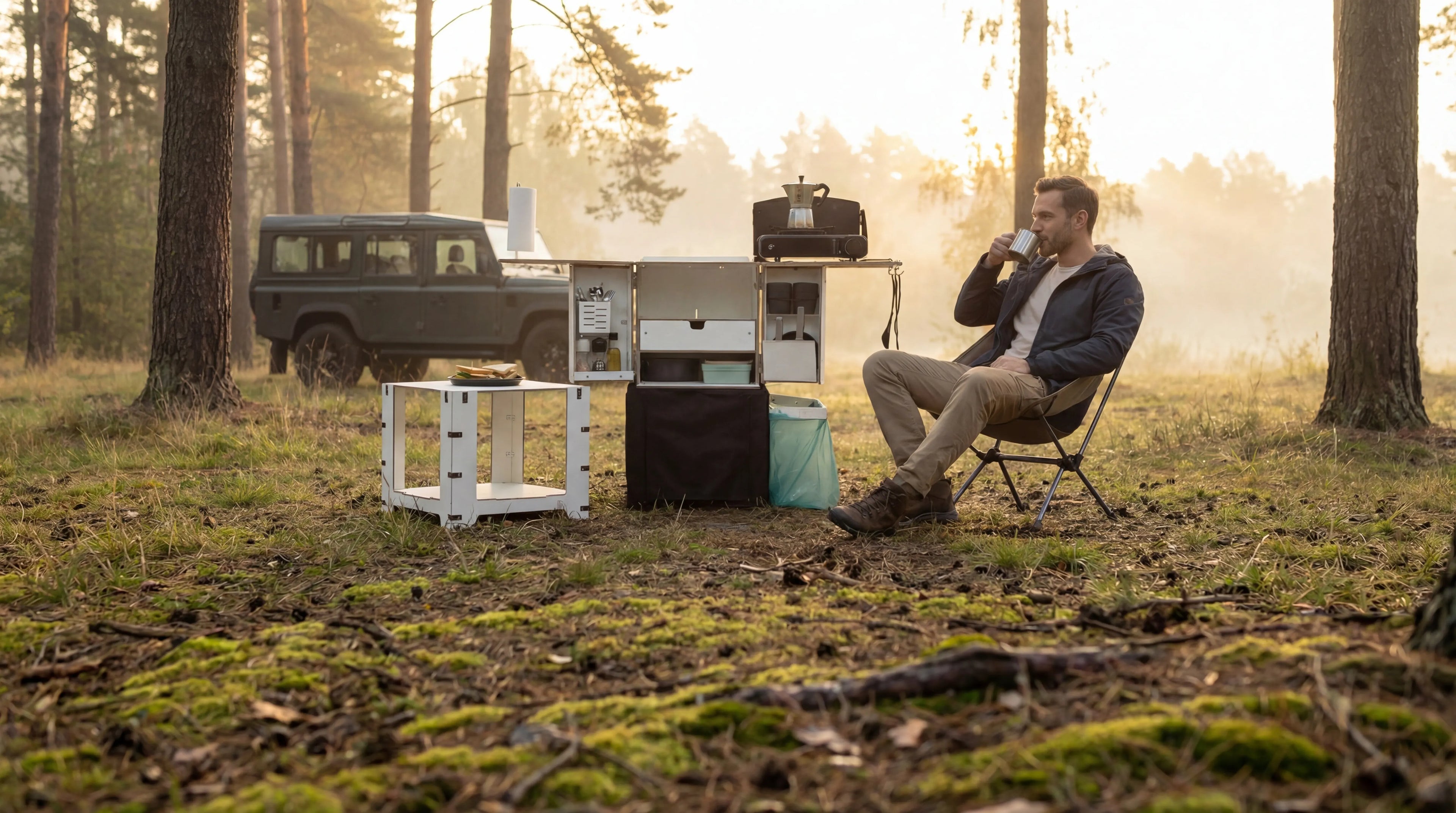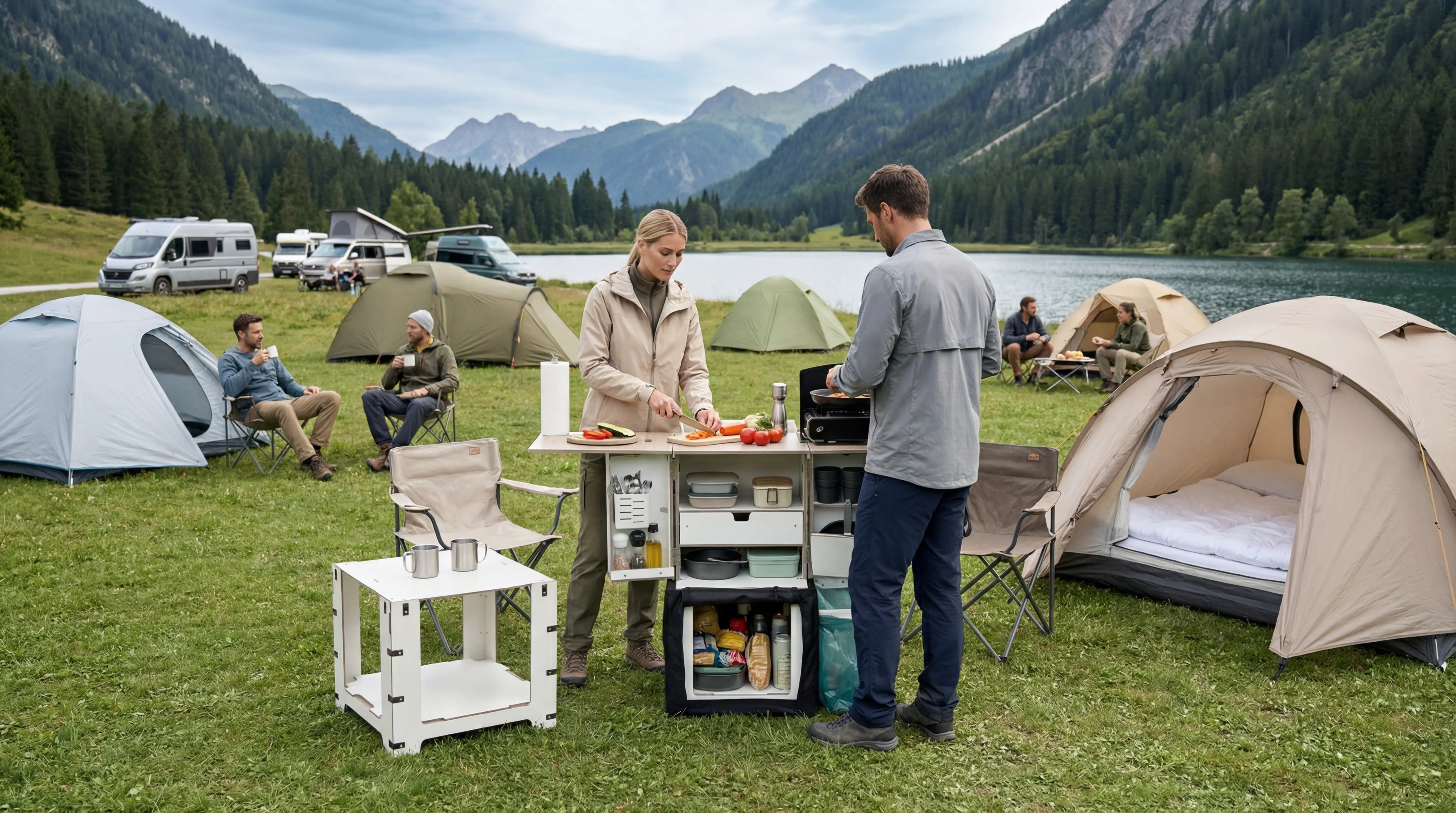 Die Campingbox ermöglicht bequemes Kochen im Freien. Sie ist perfekt für Campingausflüge, Roadtrips, Wohnwagenreisen und Outdoor-Abenteuer, bei denen Organisation, schneller Zugriff auf die Ausrüstung und ein kompaktes Format entscheidend sind.
