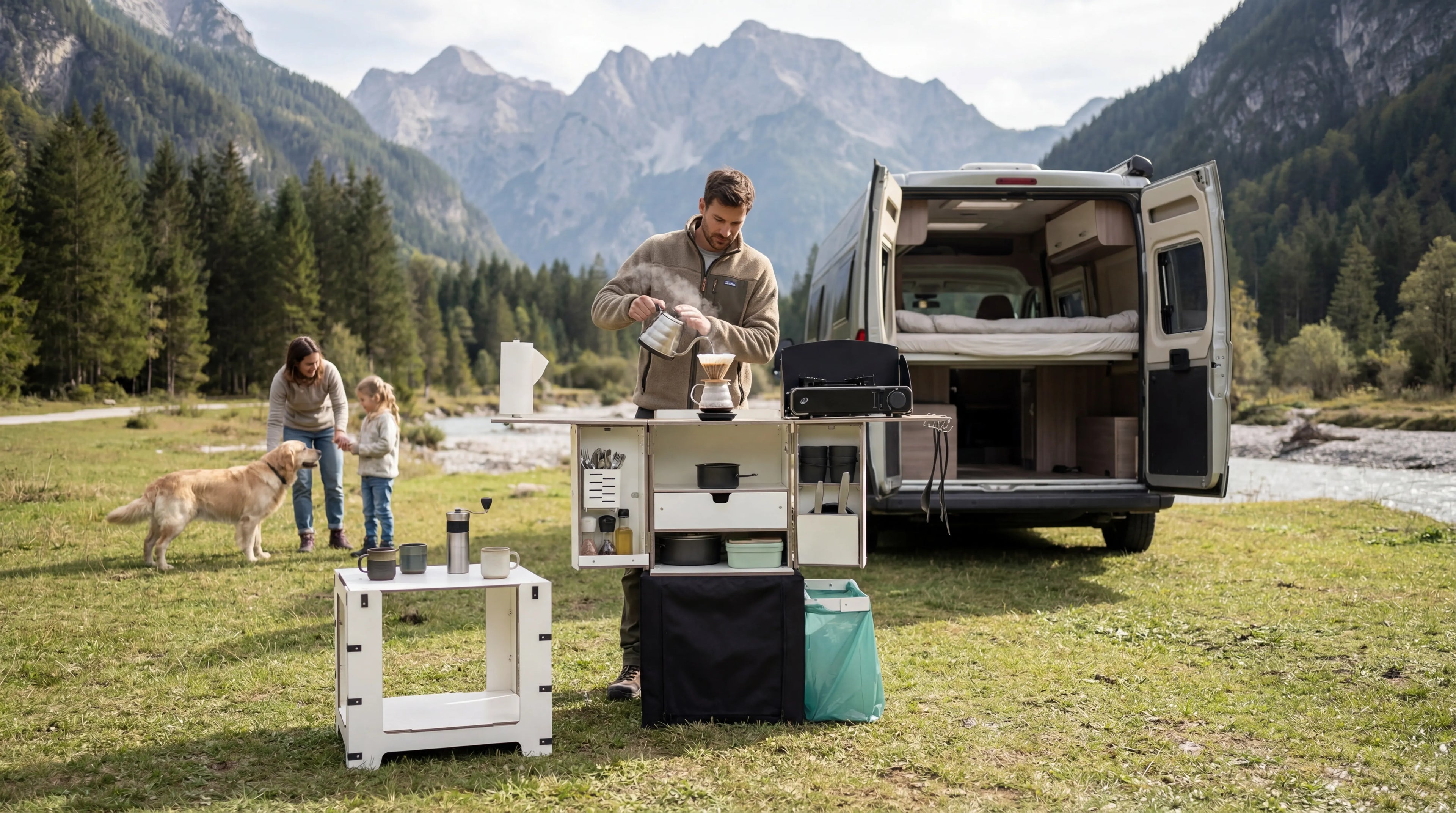 Die Camping Box ist eine modulare Campingküche , die sich zu einer kompakten Box zusammenfalten lässt. Sie ist eine vollwertige Campingküche, leicht im Auto zu transportieren und ideal für Camping, Caravaning und Vanlife.